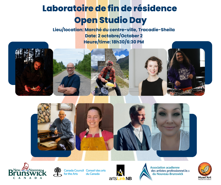 L’Association acadienne des artistes professionnel.le.s du Nouveau-Brunswick, ArtsLink, et Mawi’Art: Wabanaki Artist Collective s'associent à nouveau afin d’offrir une résidence interculturelle. Un rendez-vous biennal rassemblant 3 artistes francophones, 3 artistes anglophones et 3 artistes autochtones. Cette résidence unique permet à chaque artiste de développer une œuvre personnelle tout en s’imprégnant de l’univers créatif des autres participant.e.s. Le croisement des perspectives et des pratiques ouvre la porte à des créations audacieuses, ancrées dans un esprit de dialogue et de partage et permet d'aller au-delà des barrières linguistiques et culturelles. Cette année, la résidence de dix jours se déroulera à Tracadie-Sheila, au Villégiature Deux rivières.